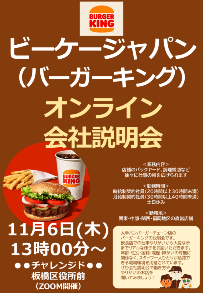 ファストフード店”バーガーキング”の会社説明会です🍔